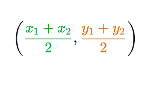 we can take ratio as k: 1, k =m1/m2 - Mid-point Formula: The mid-points of the line segment joining the points P(x1, y1) and Q(x2, y2) is