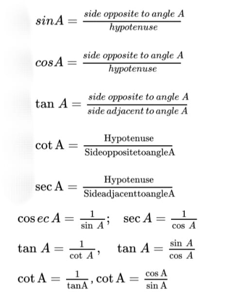 • The value of sin A or cos A never exceeds 1, whereas the value of sec A or cosec A is always greater than or equal to 1.