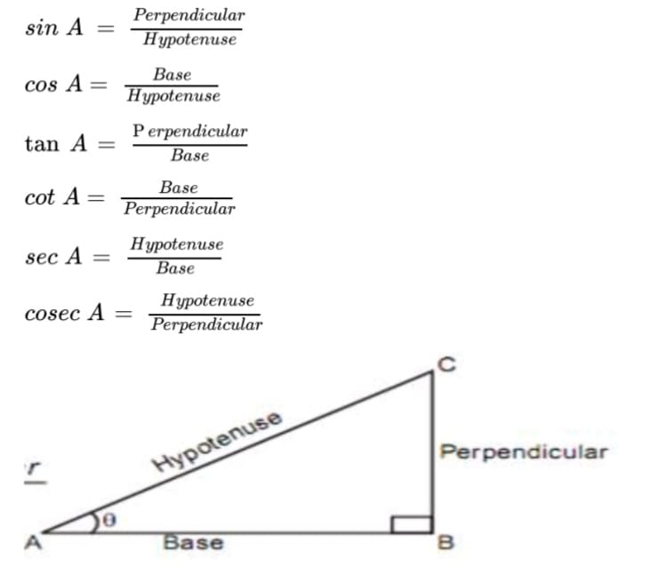 Trigonometric ratios: In ∆ABC, ∠B=90°, for angle ‘A’