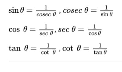 sec (90°- θ) = cosec θ,
