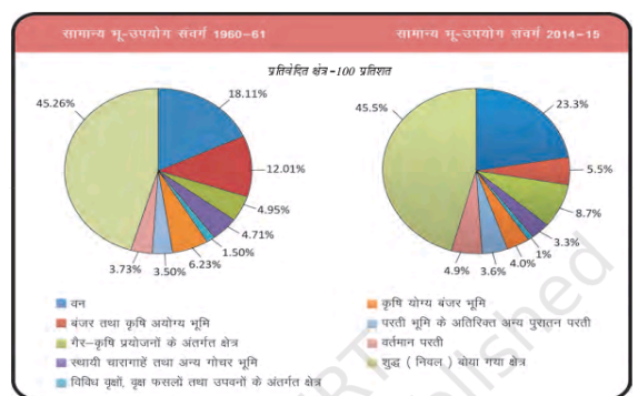 • बंजर भूमि में चट्टानी, शुष्क और मरुस्थलीय क्षेत्र शामिल हैं और अन्य गैर-कृषि उपयोगों के लिए उपयोग की जाने वाली भूमि में बस्तियां, सड़कें, रेलवे, उद्योग आदि शामिल हैं।